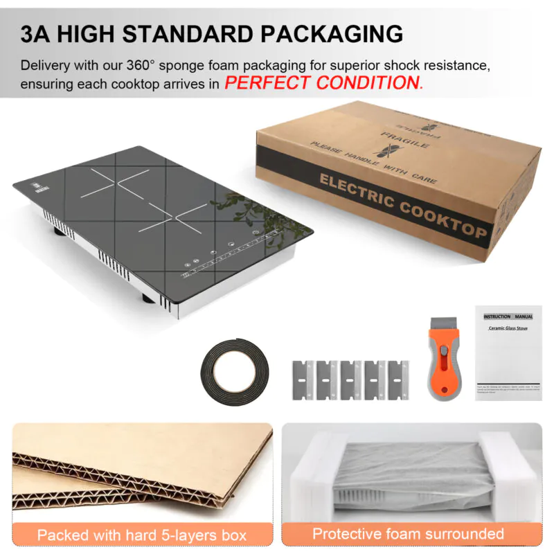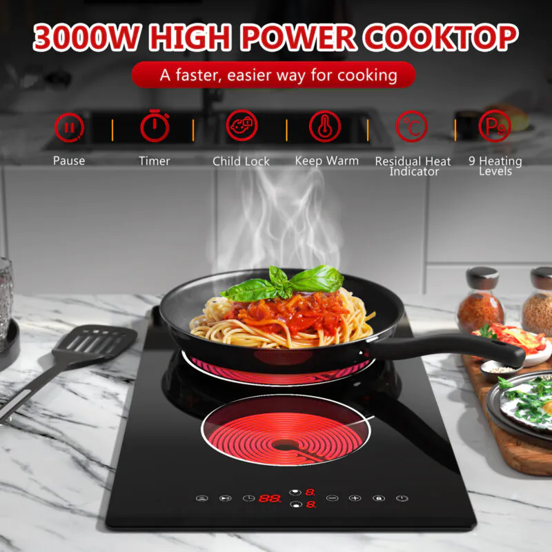 12 inch 2 Burners Plug in Electric Ceramic Cooktop – Slide Touch Control