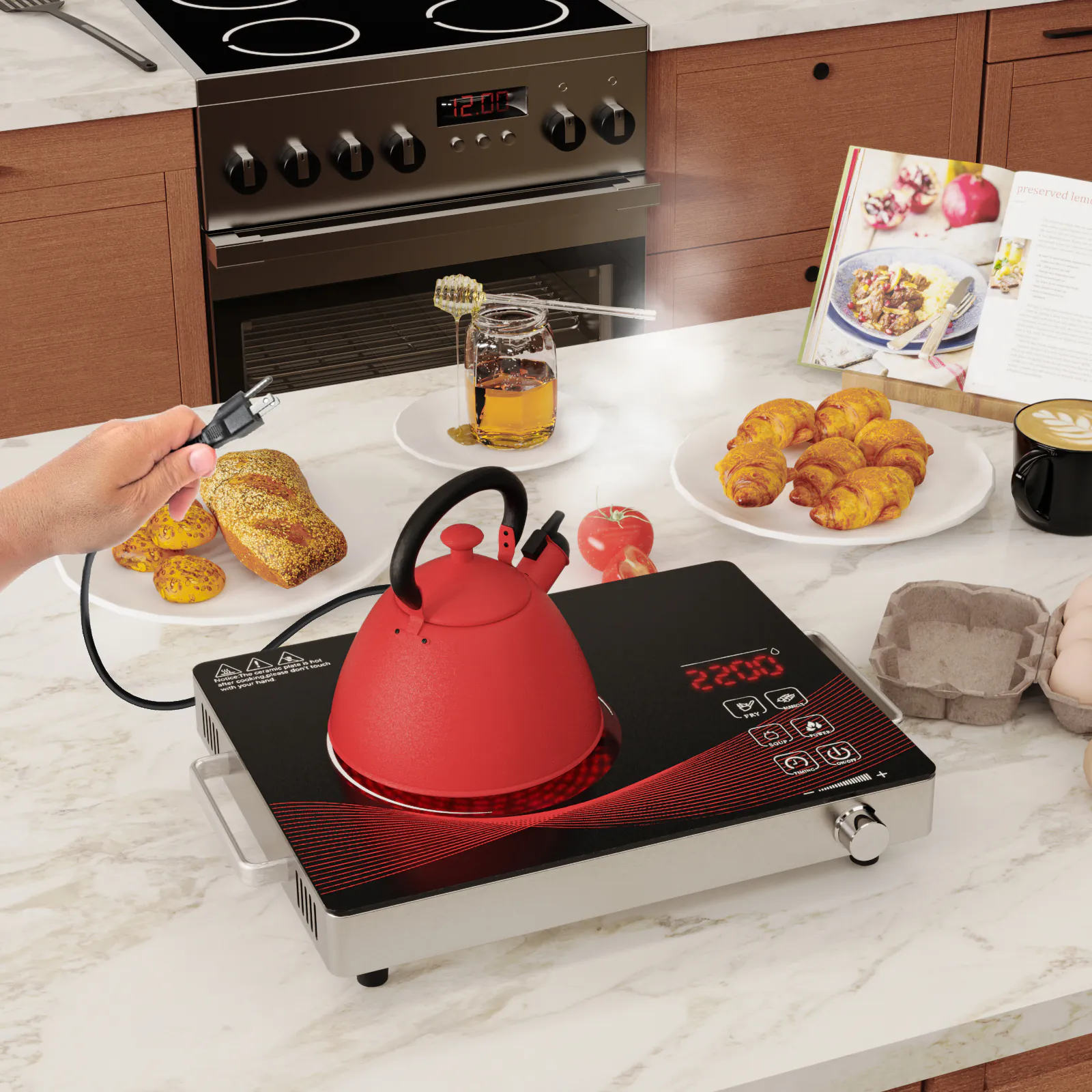 This infrared cooktop works great! It heats up quickly and maintains a steady temperature, making cooking easy and efficient. The 2200W power is impressive, and I love that itās compatible with all types of cookware. The knob control is simple to use, and the compact design is perfect for small kitchens or as an extra burner when needed. Definitely a solid addition to my kitchen