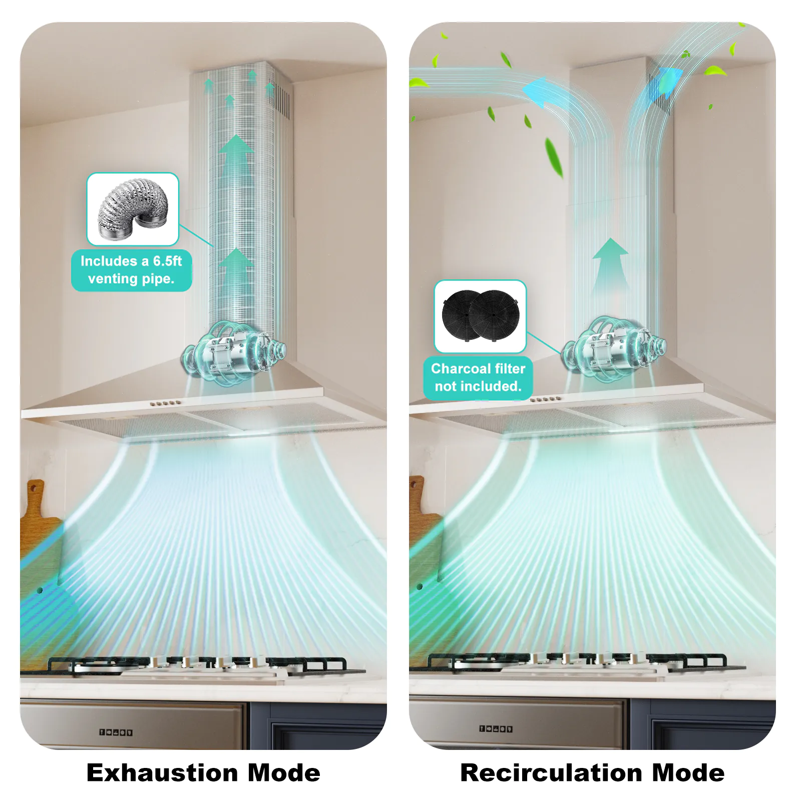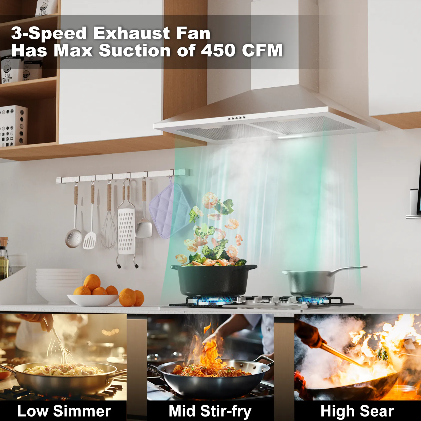 Powerful Performance: Equipped with a robust 450CFM exhaust capacity, it rapidly eliminates smoke and odors.