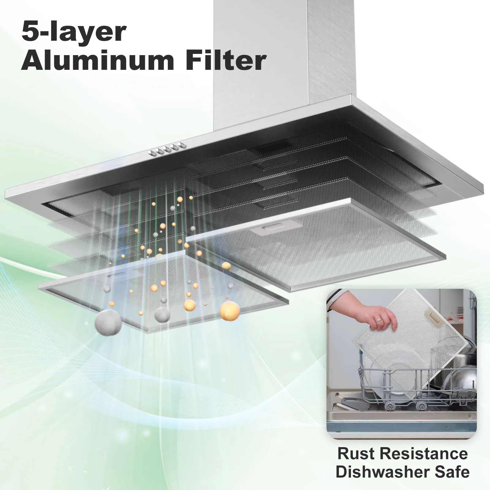 Durable and Efficient Filter: The 5-layer aluminum mesh filter provides direct and highly effective filtration of oil and smoke. Dishwasher-safe for easy maintenance.